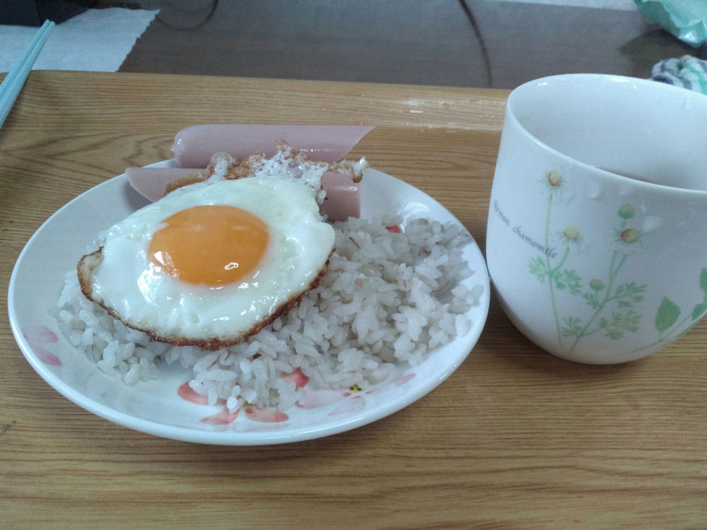 そこで、今朝の朝食は、ご飯の上に目玉焼きをのせて食べました。