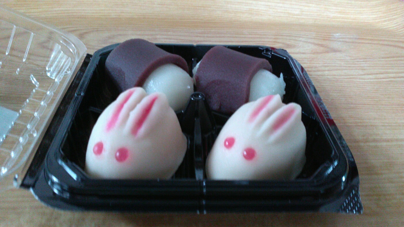 スーパーに行くと、あわしま堂のお月見団子(ウサギ)が売っていました。お月見って9月にしたような?今は10月?難しい事は考えず20%引きシールの誘惑で買いました。